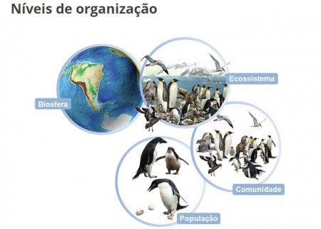 Biosfera: Se trata de um nível mais amplo que corresponde sobre todos os seres vivos do planeta, abrangendo as suas relações entre si e também com o meio ambiente.